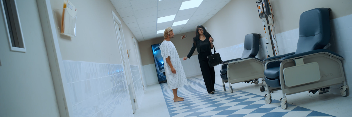 As he’s briefed on the incident by his nurse, Ian gets an unexpected visit from one of his company’s lawyers (Little Puck). She coldly informs Ian that he will not only receive zero compensation, but he will have no choice but to pay for the damages down to the company’s machinery.In a fit of rage, Ian attempts to confront the lawyer.