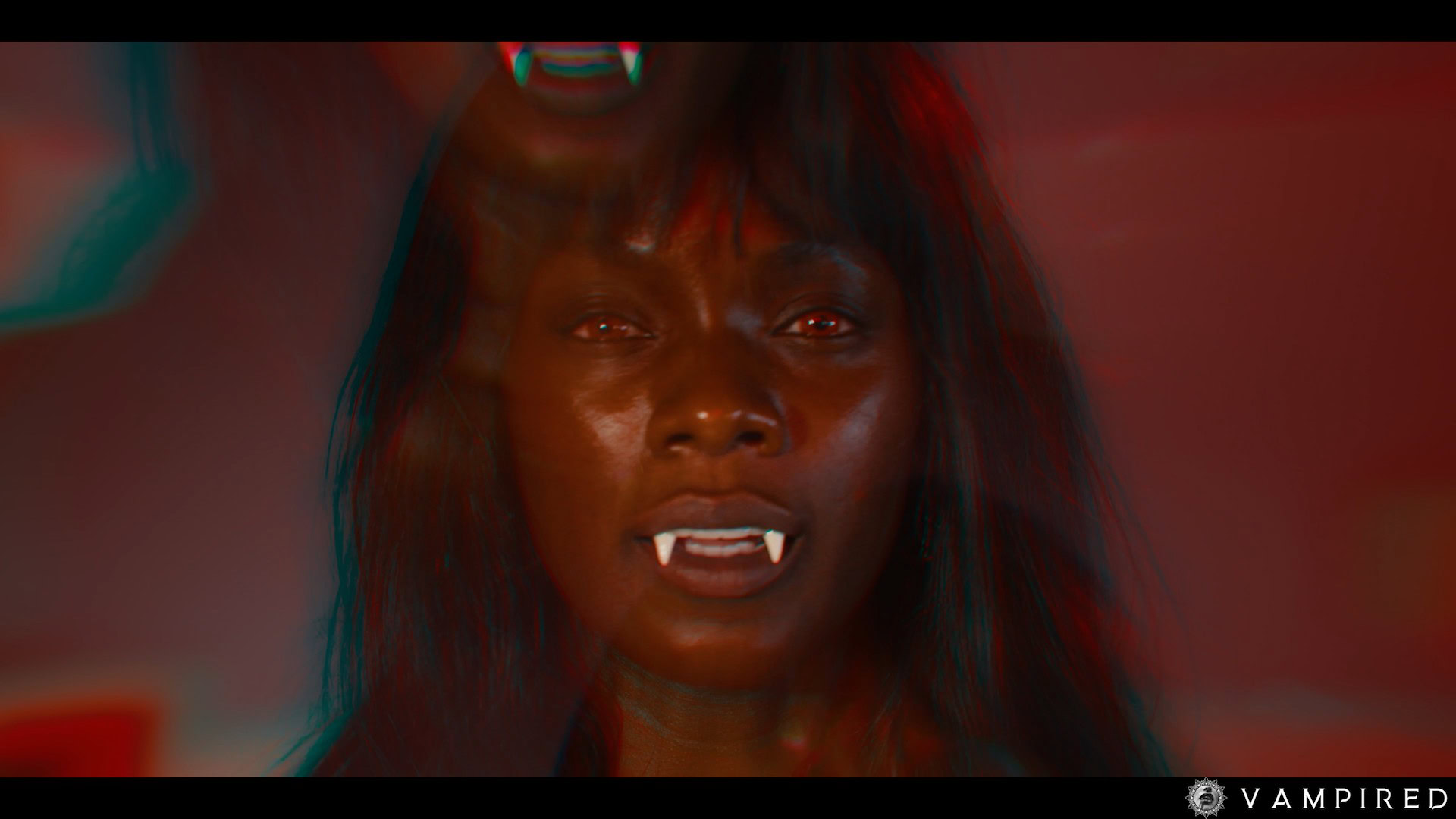 Their chuckling falls silent immediately as Elena rises from the table, glaring at the two assistants with her blood red eyes. She silences them both with a hush, revealing her sharp fangs. Elena utters her commands, instructing the assistants to entertain her by stripping their clothing and pleasing one another.