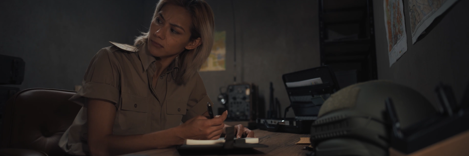 As General Leal continues tending to her duties, the faint sound of activity within the base has the General suspect something is going on. General Leal searches for the two privates, unaware that she is being stalked.
