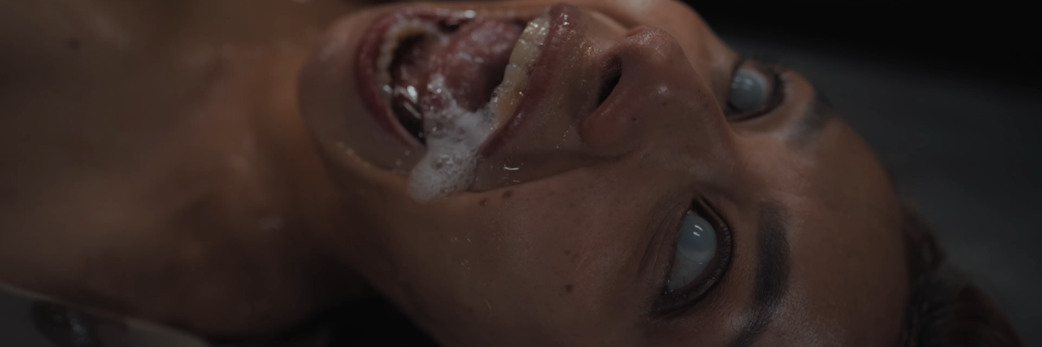 The infected women attack their superior, pinning her down and making her watch as they give birth to a newborn parasite. The creature worms its way into General Leal’s mouth, invading her body and corrupting her from within, all the while Agatha and Dolly tear away at her uniform.