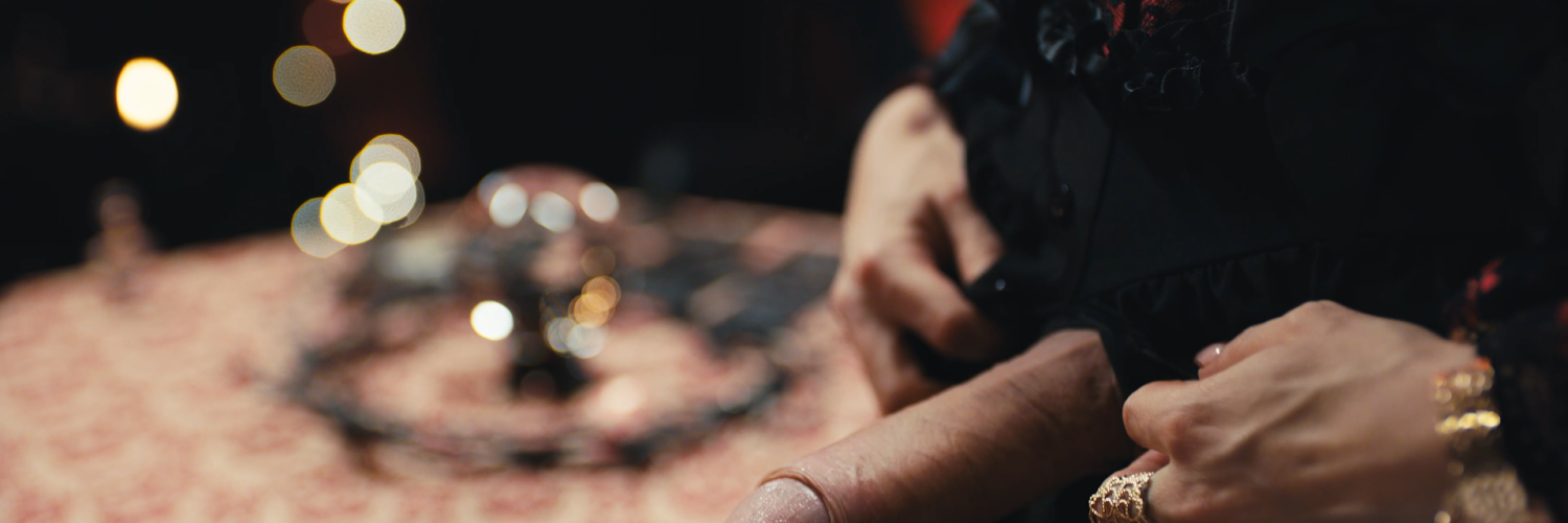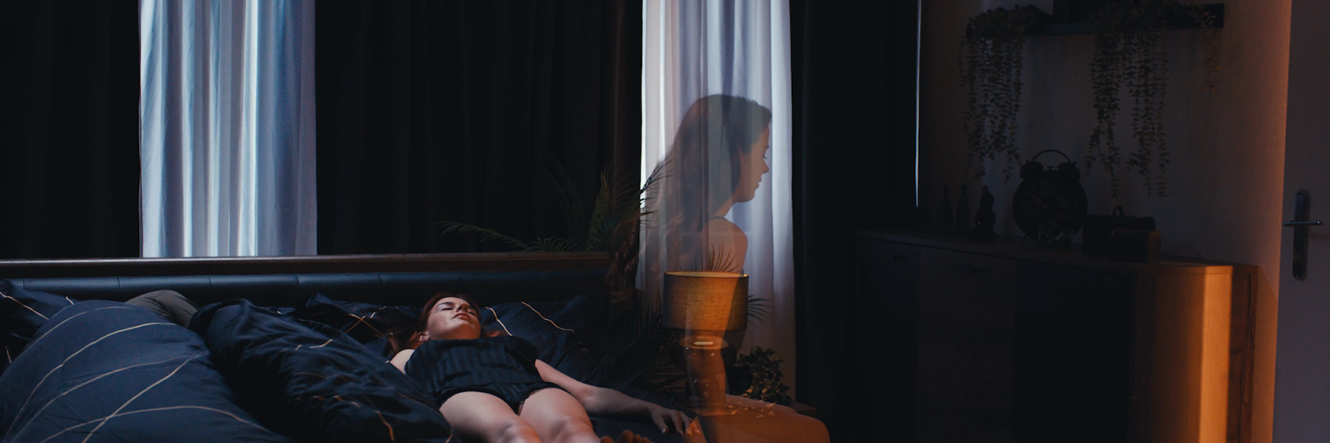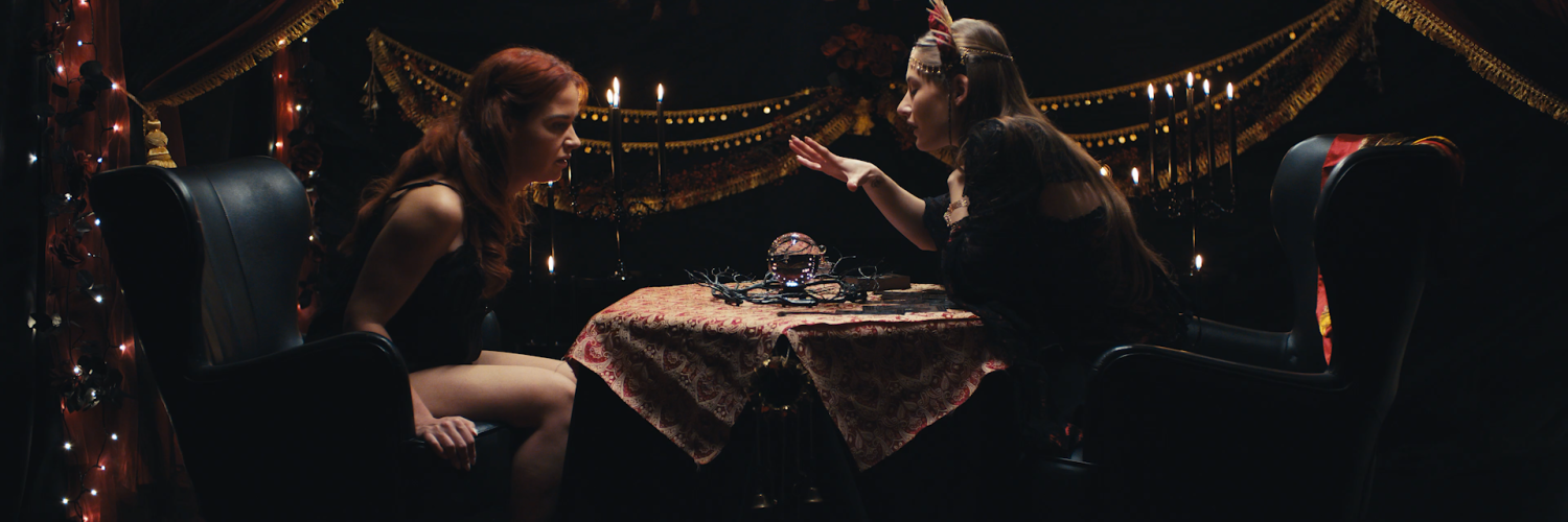 A witch (Tiffany Tatum) stares into her crystal ball, watching Norah sleep peacefully in bed with her husband. Conjuring a shadowy spirit, the witch commands it to obtain a lock of her hair, using Norah’s strands to cast a spell that will bring her soul to the witch.