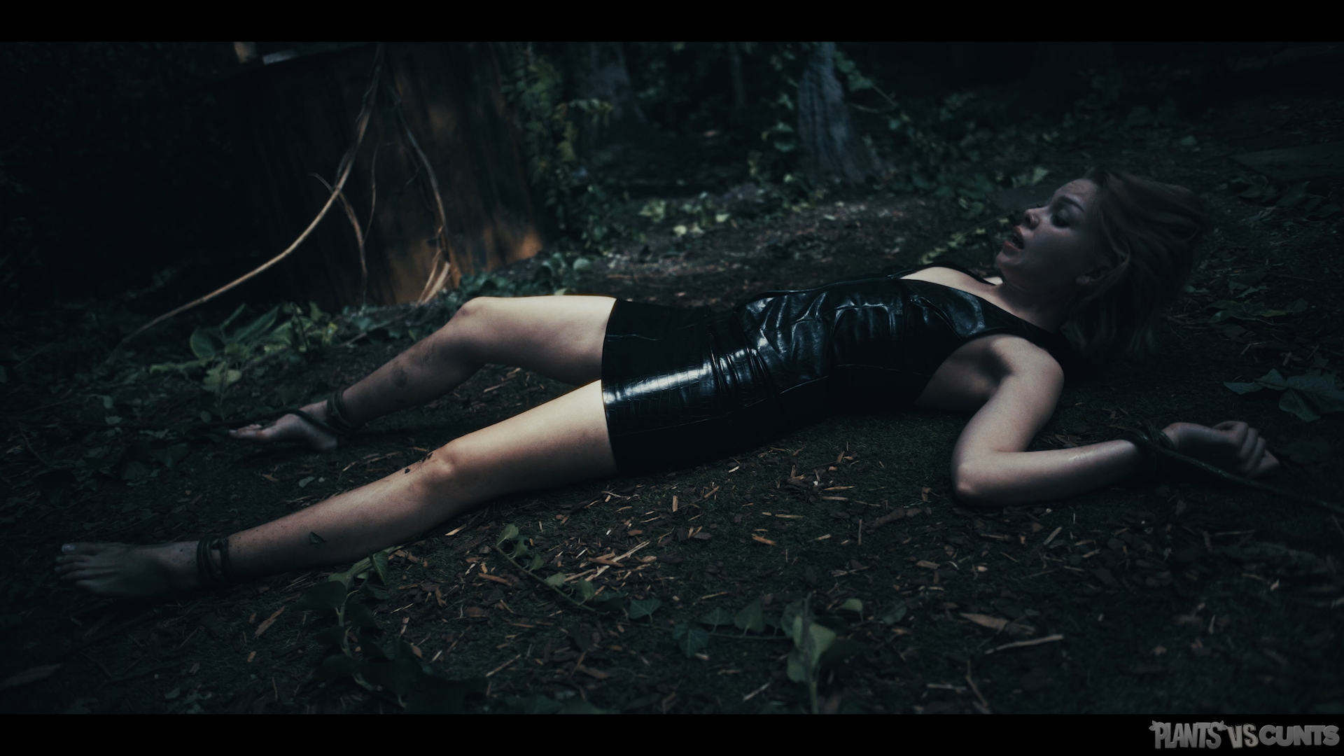 Whilst finishing up in the bathroom, Ashby hears a chilling scream. She goes to check on Sata, only to find the room empty and the door leading outside left wide open. Ashby steps outside, catching a glimmer of something on the floor. She walks further into the wooded area, finding the glimmer to be coming from Sata’s dress, discardes and torn to shreds. Ashby calls out her friend’s name into the dense forest, unaware of the entity waiting to prey on her.